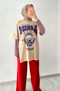 Modalamelif Florida Baskılı Bisiklet Yaka T-Shirt Sütlü Kahve