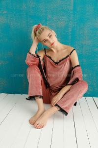 Modalamelif Fransız Kadife 3 Lü Pijama Takımı Pudra
