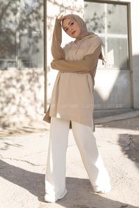 Modalamelif Freedoom Nakışlı Kapşonlu Tunik Açık Vizonrengi