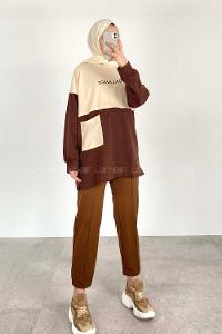 Lamelif Armalı Tesettür Sweat Acı Kahve