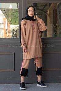 Lamelif Balance Armalı Çımalı İkili Tesettür Takım Camel