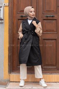 Lamelif Kadife Yaka Kapitone Mont Siyah