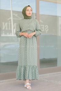 Modalamelif Gemici Desen Elbise Pastel Yeşili