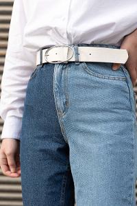 Modalamelif Geniş Oval Tokalı Gümüş Kemer Beyaz