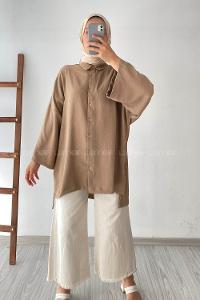 Modalamelif Geniş Yarım Kollu Önü Düğmeli Tunik Camel
