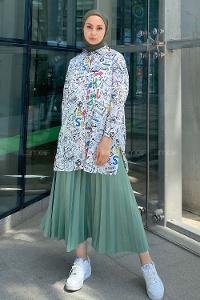 Lamelif Omuz Vatka Detaylı Tesettür Gömlek Yağ Yeşili