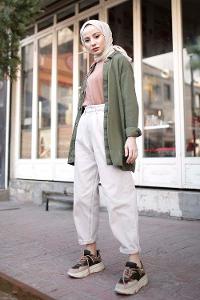 Lamelif Dekoratif Cep Detaylı Tesettür Ceket Haki
