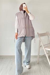 Lamelif Bağlamalı Kaşe Yelek Taş Rengi