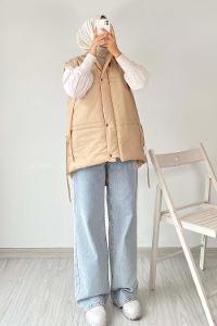 Modalamelif Gizli Fermuarlı Çift Cepli Yelek Sütlükahve