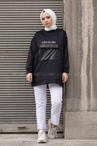 Lamelif Kol Baskılı Tunik Siyah