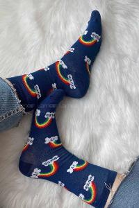 Modalamelif Gökkuşağı Baskılı Soket Çorap Lacivert