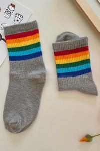 Modalamelif Gökkuşağı Çizgili Gri Soket Çorap