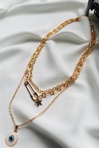 Modalamelif Gold 3Lü Kombin Çengel İğne Detaylı Kolye