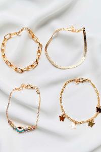 Modalamelif Gold 4Lü Göz Nazar ve Kelebek Detaylı Bileklik Seti