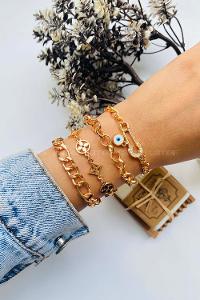 Modalamelif Gold 4lü Kombin Çengel İğne Detay Bileklik Seti