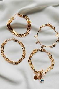 Modalamelif Gold 4Lü Nazar Kilit Detaylı Bileklik Seti