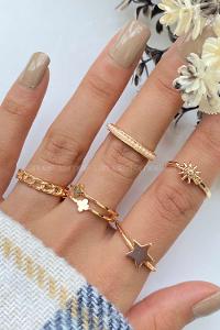Modalamelif Gold 5li Güneş Detaylı Yüzük