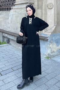 Lamelif Düğme Detaylı Tesettür Elbise Yavru Ağzı