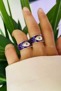 Modalamelif Gold Lacivert Mineli Göz Yüzük