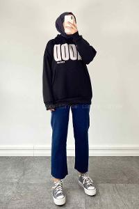 Lamelif Kapüşonlu Salaş Sweatshirt Siyah