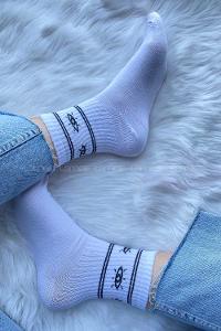 Modalamelif Göz İşlemeli Soket Çorap Beyaz