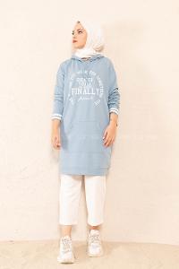 Modalamelif Greather Yazı Baskılı Sweat Tunik Açık Mavi