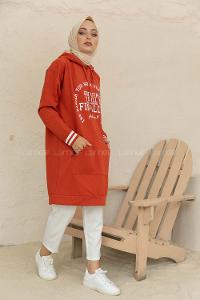 Modalamelif Greather Yazı Baskılı Tunik Kiremit