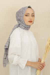 Modalamelif Açık Gri Ekose Desen Pamuk Vual Şal
