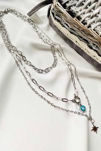 Lamelif Gümüş Çelik Çokrenkli Kristal Taşlı Yıldız Kararmaz Kolye