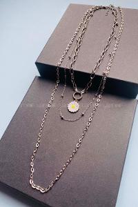 Modalamelif Gümüş 3lü Zincir Papatya Kolye