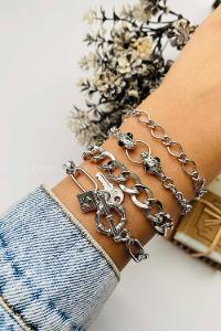 Gümüş 4lü Kombin Yılan Detay Bileklik Seti , avantajlı fiyatlar kredi kartına taksit imkanıyla Lamelif.com da