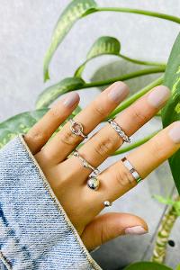 Modalamelif Gümüş 5 li Halka Detay Yüzük Seti