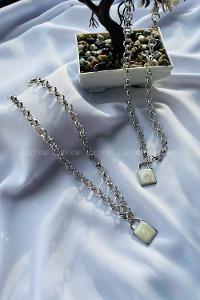 Modalamelif Gümüş Zincir Beyaz Kilit Kolye