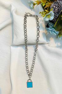 Modalamelif Gümüş Zincir Mavi Kilit Kolye, renk ve beden seçenekleri kredi kartına 12 taksit veya kapıda ödeme imkanıyla lamelif.com da