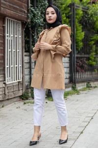 Modalamelif Güpür Fırfırlı Tunik Sütlü Kahve