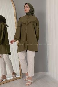 Lamelif Kol Tünel İp Detaylı Gömlek Yağ Yeşili