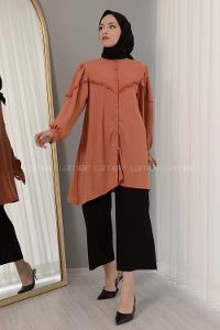 Modalamelif Hakim Yaka Balon Kol Gömlek Kiremit