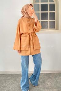 Modalamelif Hakim Yaka Bel Bağcıklı Tunik Somon
