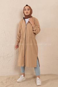 Lamelif Kruvaze Kısa Tesettür Trençkot Taş Rengi