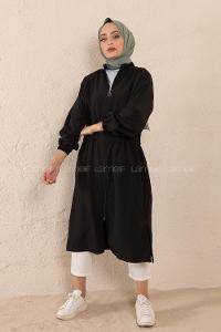 Modalamelif Hakim Yaka Bel Yarım Lastik Kap Siyah