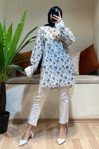 Lamelif Flores Fırfırlı Tunik Beyaz