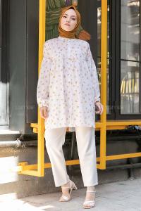 Lamelif Flores Fırfırlı Tunik Beyaz