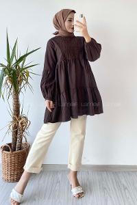 Lamelif Lopez Balon Kol Tunik Acı Kahve