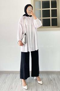 Lamelif Manşeti Biyeli Tunik Acı Kahve