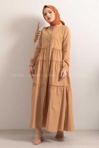 Lamelif Elica Tesettür Elbise Taş Rengi