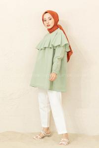 Modalamelif Hakim Yaka Fırfırlı Tunik Çağla Yeşili