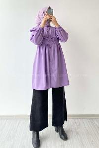 Modalamelif Hakim Yaka Fırfırlı Tunik Eflatun