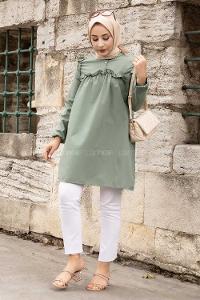 Modalamelif Hakim Yaka Fırfırlı Tunik Haki