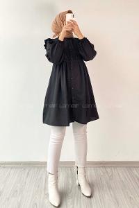 Modalamelif Hakim Yaka Fırfırlı Tunik Siyah