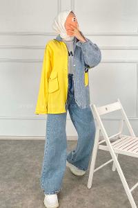 Modalamelif Hakim Yaka Gizli Fermuarlı Kapak Cepli Garnili Ceket Sarı